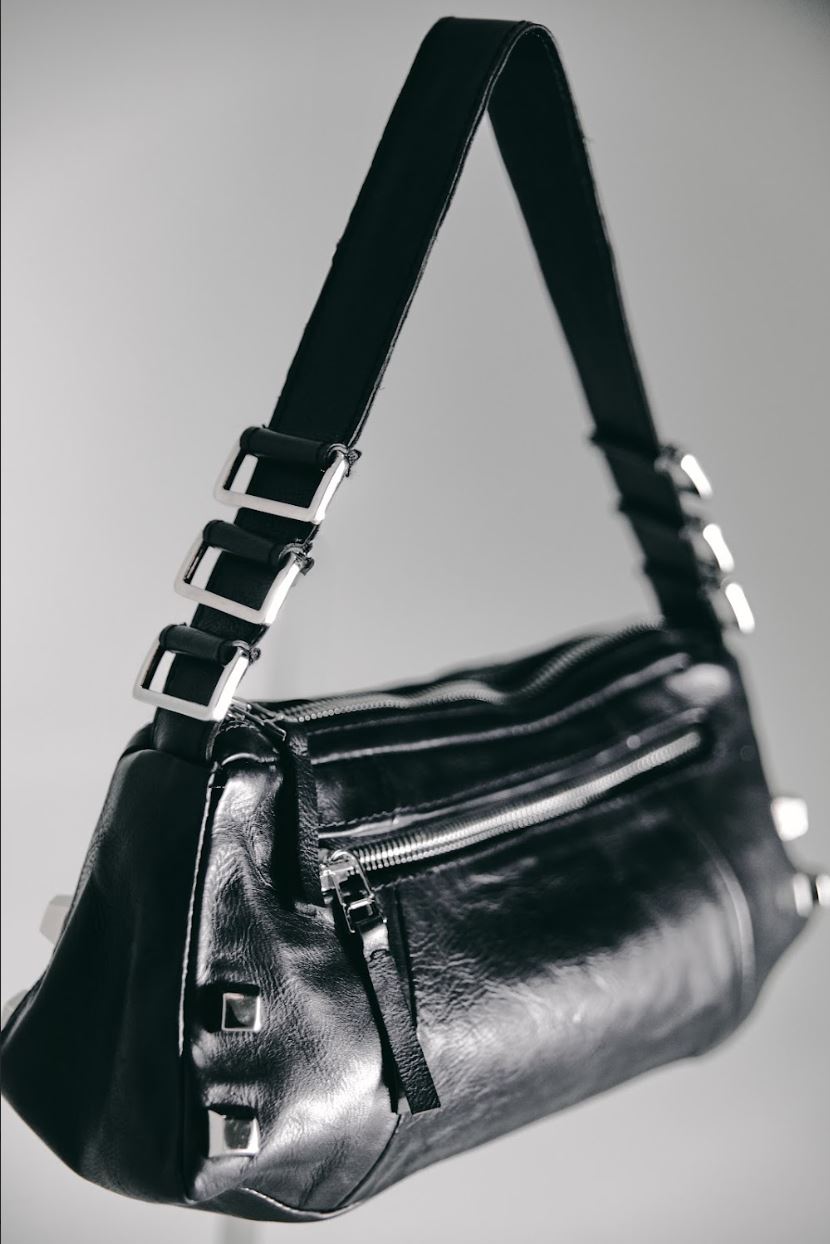 This bag takes cues from the iconic 'It' bags of the early 2000s, blending them with punk and industrial influences
